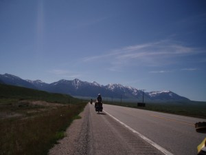 We wanted to make it into Dillon, Montana today for a ride of about 73 miles, but the winds kicked up and pinned us down in Twin Bridges. Gusts were up beyond 46 miles per hour, and we were doing well as long as we were north bound, but at Twin Bridges we need to turn south-west, right into the teeth of that wind. The bikes, loaded with the panniers on the front and rear, have the aerodynamics of refrigerator boxes, so we chose to camp at Twin Bridges rather than fight the wind into Dillon.